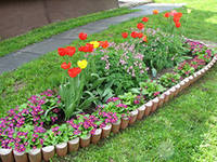 Ну а теперь давайте приступим к организации альпийской горки. Когда вы уже все подготовили и перетащили на место, стоит взять лопату и приступить. Первое, что нужно сделать – это выложить довольно крупные камни одного вида, затем присыпать их землей, чтобы ее слой был не больше20 сантиметров. Обязательно утрамбуйте ее. Теперь переходим ко второму уровню – теперь камни будут чуть меньше и заполнят наполовину пространство между более крупными. Сверху также насыпьте земли. Повторять эти действия стоит до тех пор, пока горка не будет полностью собрана. Ну а теперь перейдем к растениям, которые будут украшать вашу альпийскую горку. Это могут быть как различные цветы и травы, так и небольшие кустарники. Специалисты советуют сажать, например, нарциссы, ирисы или тюльпаны, а также розы только карликовых пород или даже можжевельник.