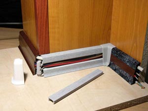 Система налаженности такого плинтуса такая же, как и у шпонированного. Здесь не потребны заглушки-уголки, просто запиливают под углом. Безукоризненно годится под ламинат – ламинированный паркет и по цвету, и по степени глянца, и по структуре. Огромное число ведущих производителей Европы вырабатывают плинтусы своего производства. Ламинированные плинтуса также обладают недостатками. Выбор производителей небольшой. Рынок насыщенный неудовлетворительно. Практически не представляются отечественные марки, у них достаточно низкий ассортимент, недостаточно популярный, не имеет продвижений. Если обратиться к фирменному ламинированному плинтусу нашего производства, то можно заметить, что его стоимость достаточно высокая. Иногда такие плинтуса даже дороже шпонированных. Существуют ограничения в величинах, предельная его высота может достигать шестьдесят миллиметров. Можно заметить что рельефность или фигурность ламинированных напольных плинтусов также небезграничны.