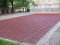 Резиновая плитка – оптимальный вариант покрытия детской игровой зоны, она может защитить ребенка от травм в случае падения или удара. Такая плитка не пачкает одежду и не накапливает воду (особенности монтажа препятствуют скоплению воды в виде луж). Резиновую плитку 3-4 смтолщины укладывают на сыпучую поверхность, предварительно подготовленную (утрамбованную). Если площадка уже имеет бетонное или асфальтовое покрытие, можно использовать плитку толщиной в2 см– такой вариант позволит сэкономить средства.